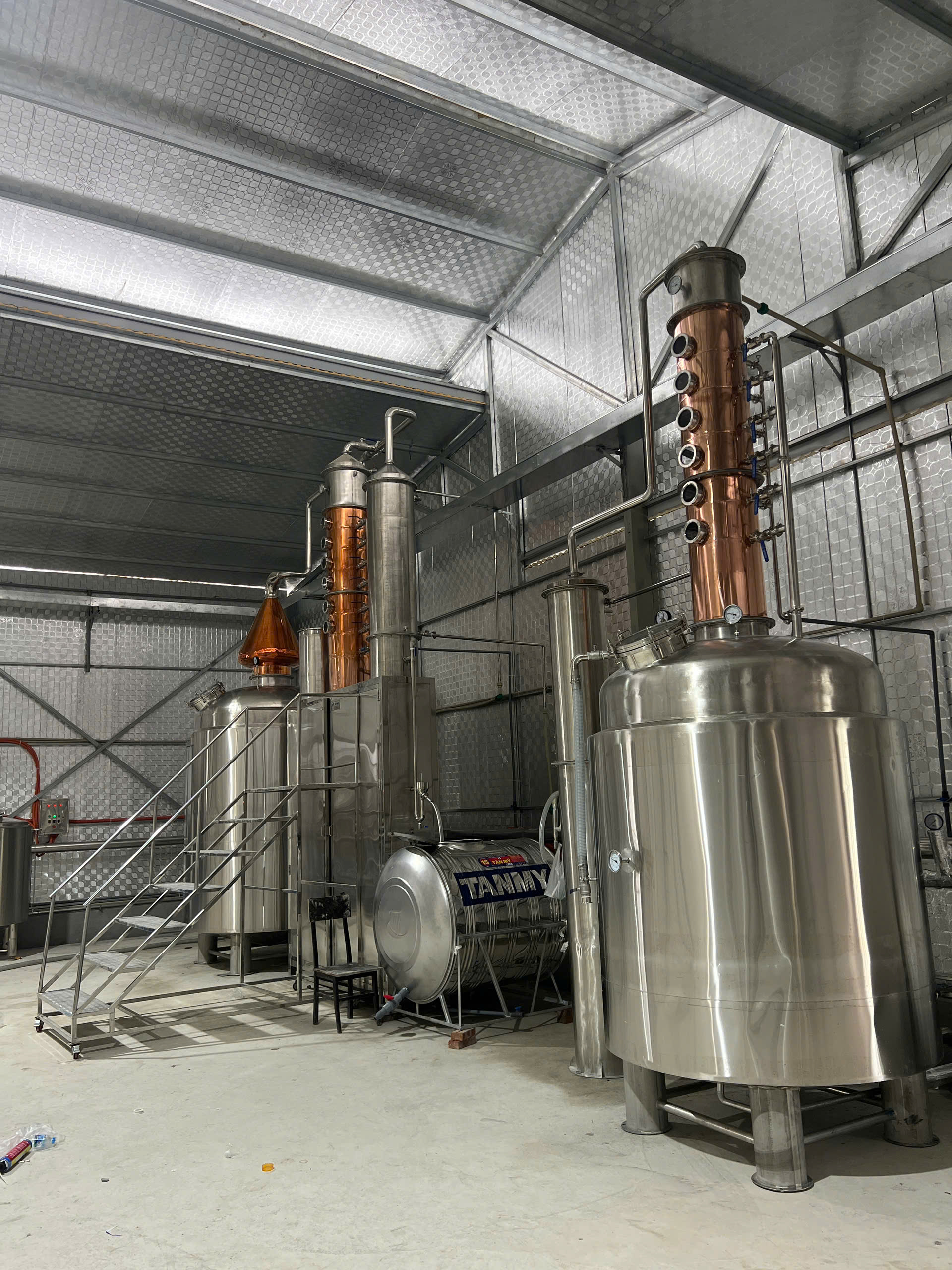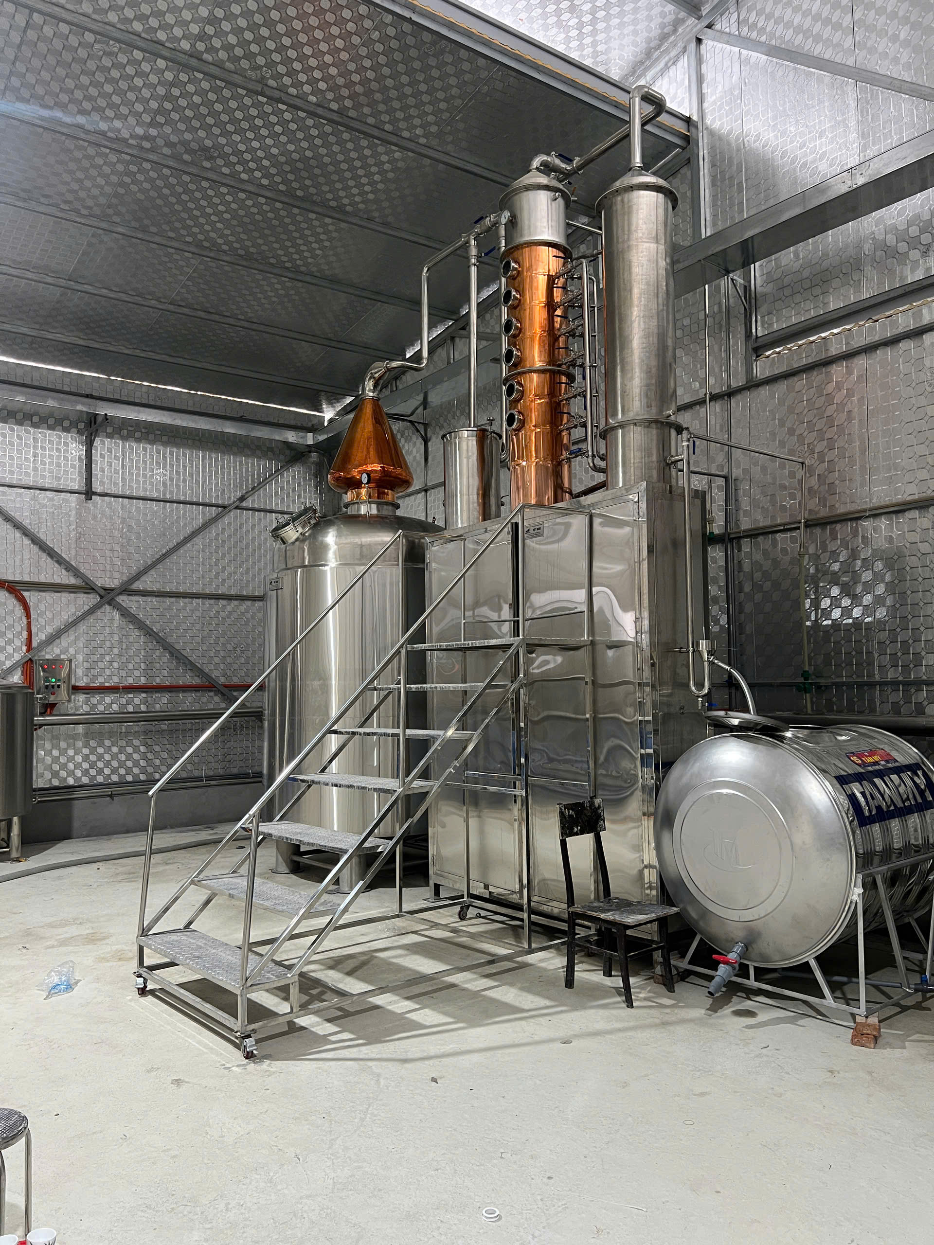 Nồi chưng cất: sử dụng gia nhiệt bằng lò hơi, truyền nhiệt qua khoang áo hơi. Nhờ vậy, dịch lên men sôi đều, không bị cháy ở phần đáy, đồng thời tiết kiệm đáng kể chi phí năng lượng.
