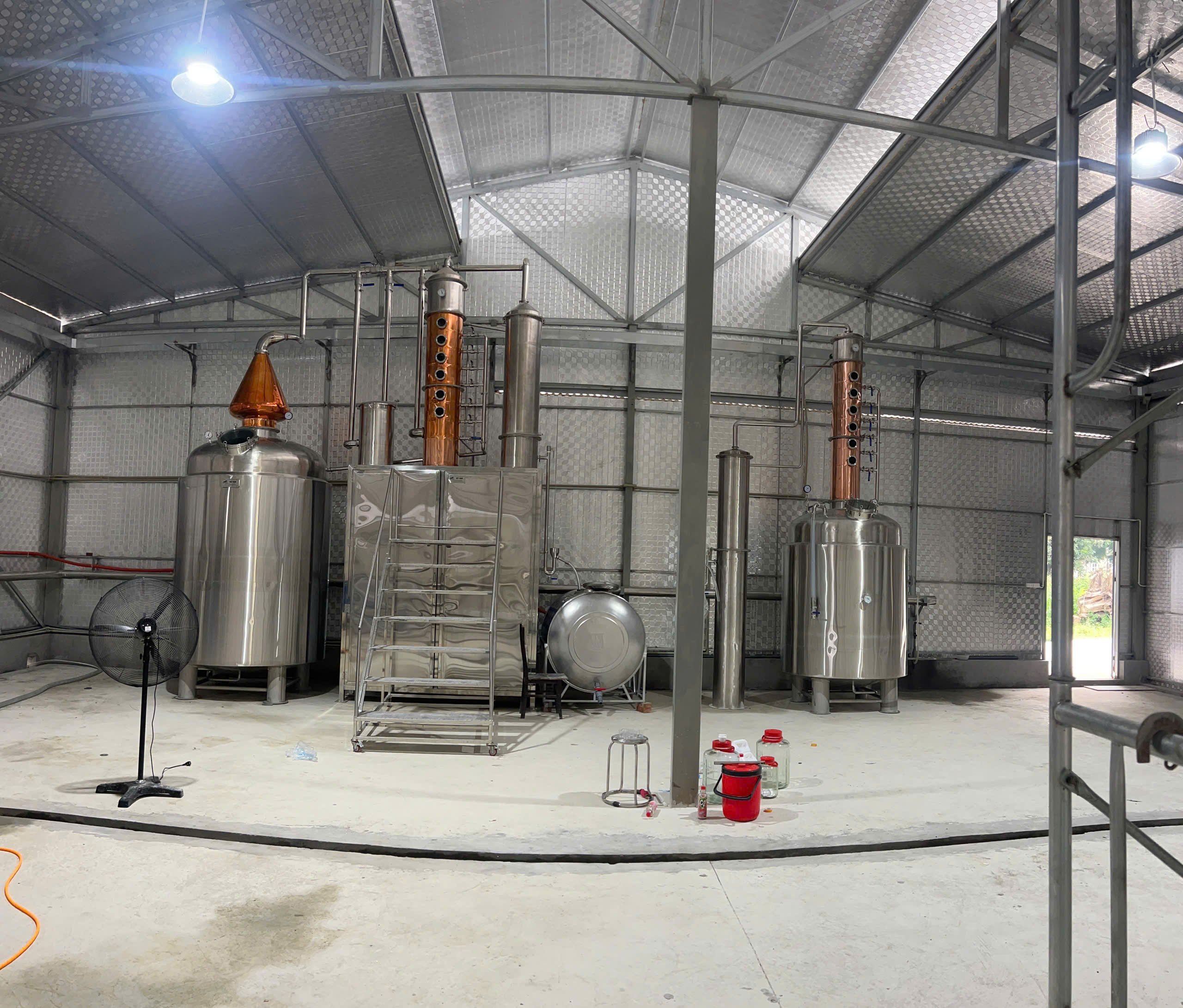 Nồi chưng cất: sử dụng gia nhiệt bằng lò hơi, truyền nhiệt qua khoang áo hơi. Nhờ vậy, dịch lên men sôi đều, không bị cháy ở phần đáy, đồng thời tiết kiệm đáng kể chi phí năng lượng.